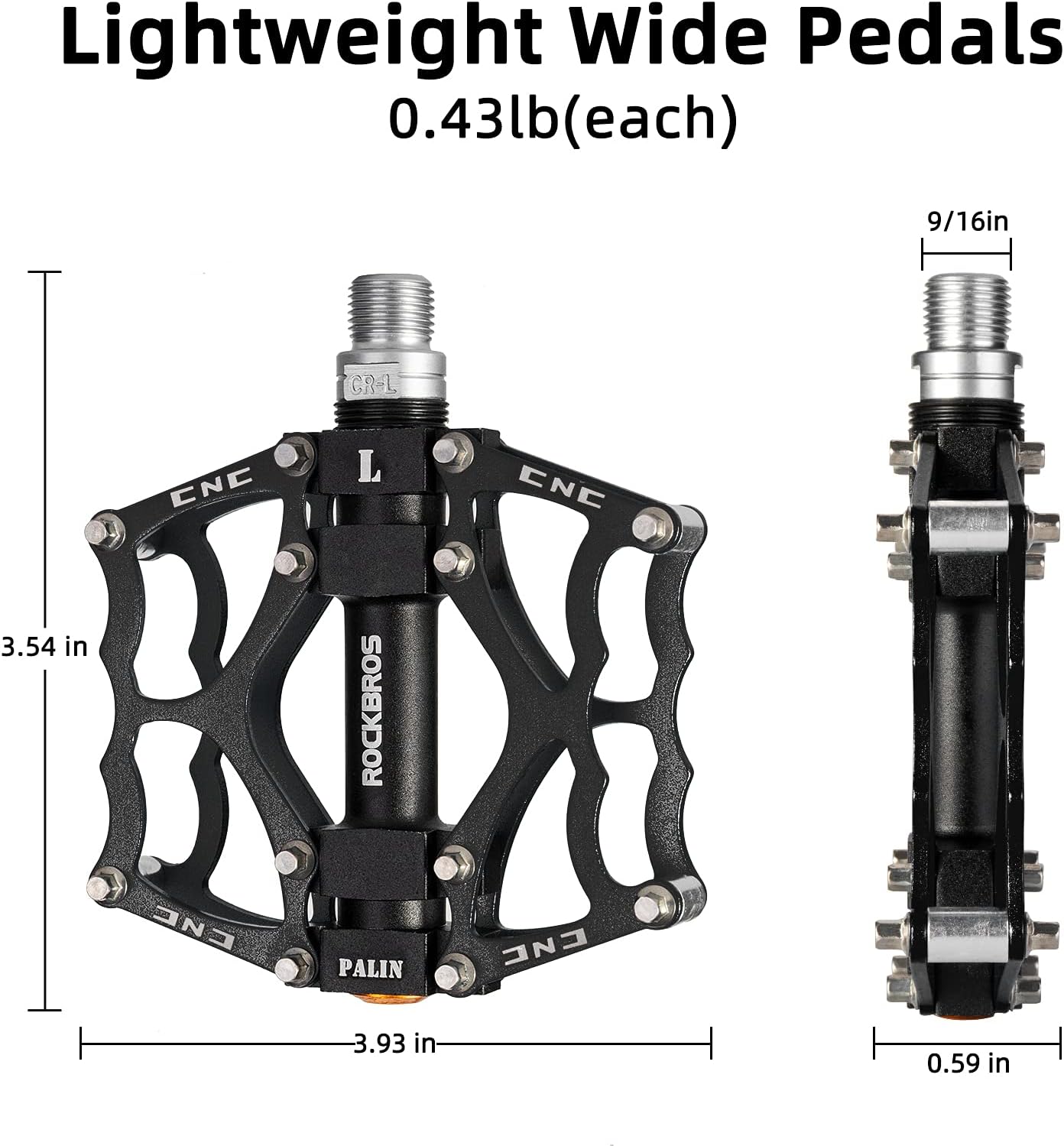 Questi pedali per bici ROCKBROS sono progettati per combinare leggerezza e durata. Realizzati in lega di alluminio con tecnologia CNC, pesano solo 195 g per pedale (per un peso totale di 390 g la coppia), il che li rende ideali per risparmiare energia.