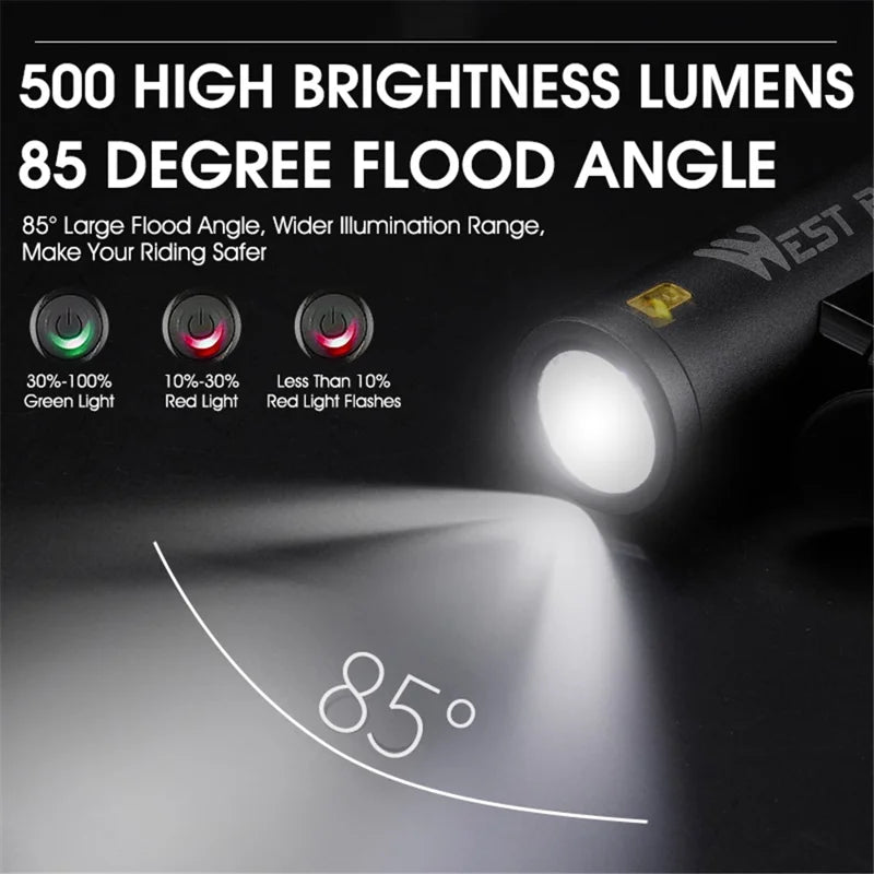 WEST BIKING YP0701332: Lampada anteriore LED 500LM per bicicletta – Sicurezza ottimizzata per i tuoi viaggi notturni (Nero)