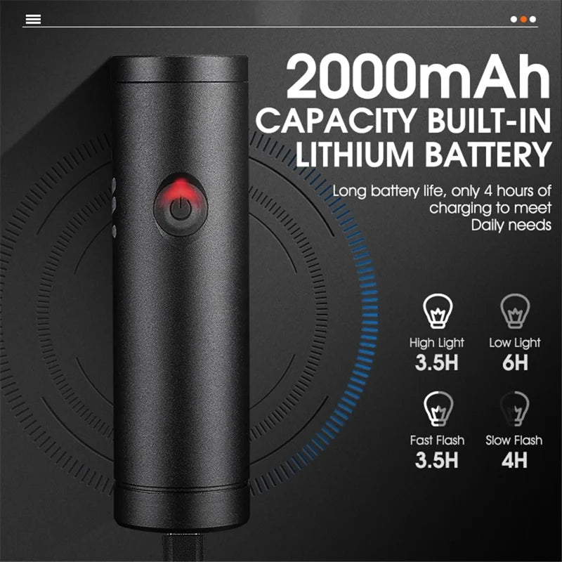 Dotata di un LED T6 ultra luminoso, questa lampada emette 500 lumen di luce intensa, illuminando la strada fino a una distanza impressionante di 200 metri. La sua illuminazione grandangolare di 85° garantisce una copertura ampia, aumentando notevolmente il tuo campo visivo e la sicurezza durante le uscite notturne.