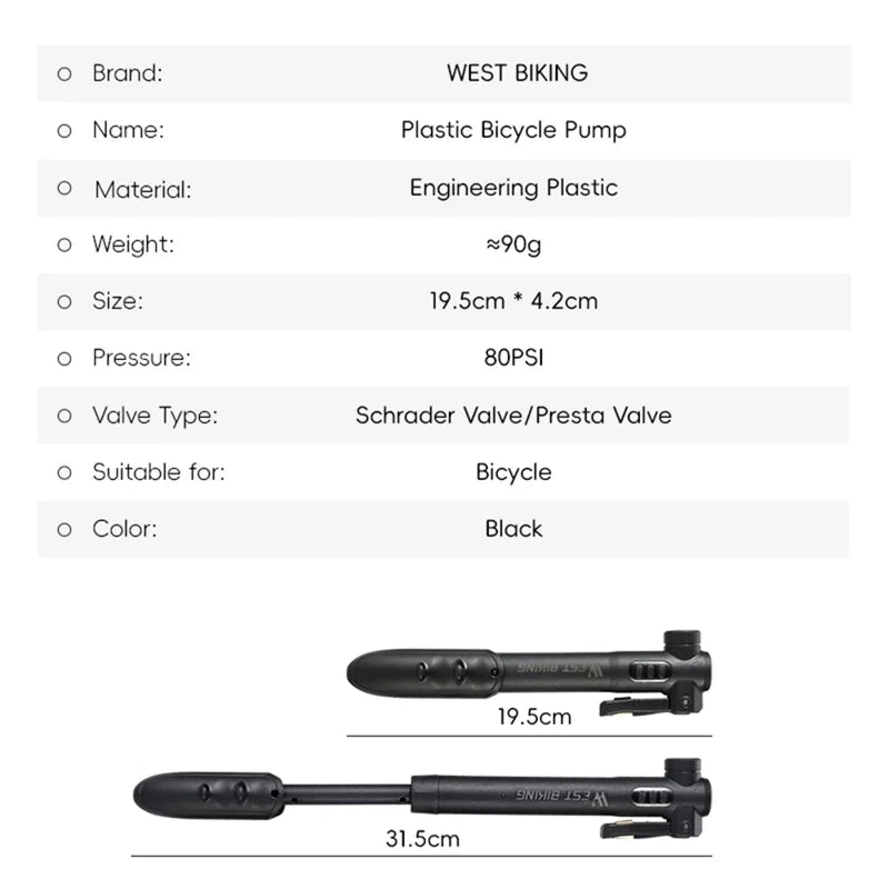 WEST BIKING YP0711182 Pompa per bicicletta portatile 80 PSI Mini in plastica