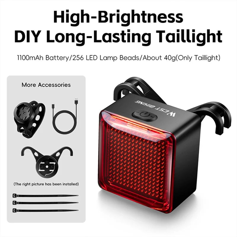 539Fanale posteriore per bicicletta con sensore di frenata, programmabile fai-da-te - Montaggio sotto sella