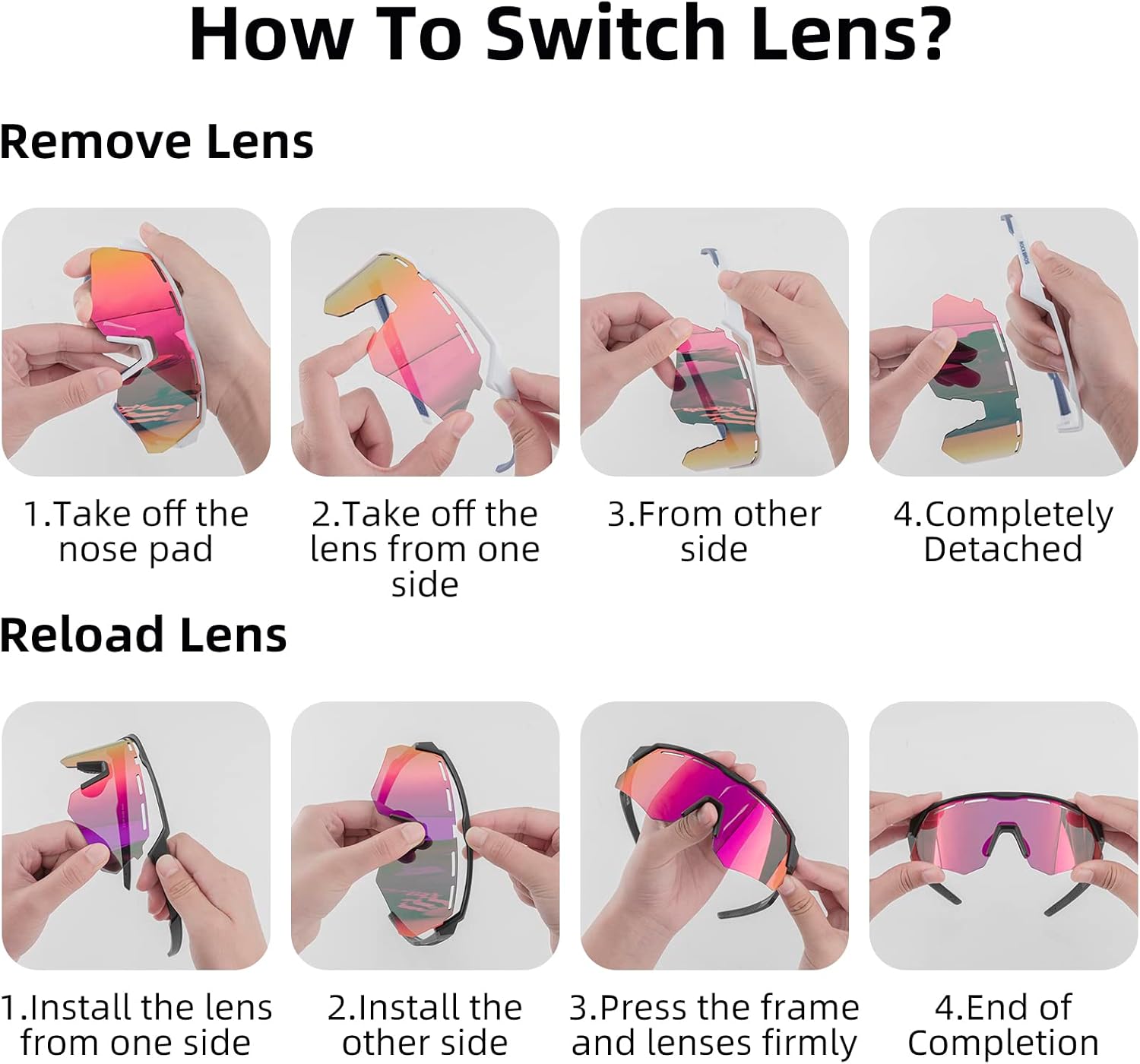 UNA VISIONE ADATTA A OGNI SITUAZIONE: Questi occhiali versatili sono forniti con 4 lenti intercambiabili per una chiarezza ottimale in ogni condizione. Approfitta delle lenti polarizzate grigie per il sole intenso, delle lenti gialle per la guida notturna, delle lenti trasparenti per l'uso quotidiano e i giorni nuvolosi, e delle lenti colorate per una protezione maggiore contro la luce nociva.