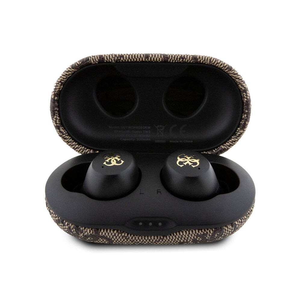 Scopri la fusione definitiva di stile e tecnologia con gli auricolari wireless veri GUESS. Questi auricolari di alta gamma offrono non solo fino a 30 ore di piacere musicale, ma portano anche funzionalità e comfort della più recente tecnologia wireless nella tua vita quotidiana. Con un design accattivante che presenta la stampa iconica GUESS in un logo dorato su uno sfondo marrone chic, questi auricolari sono anche una dichiarazione di moda.