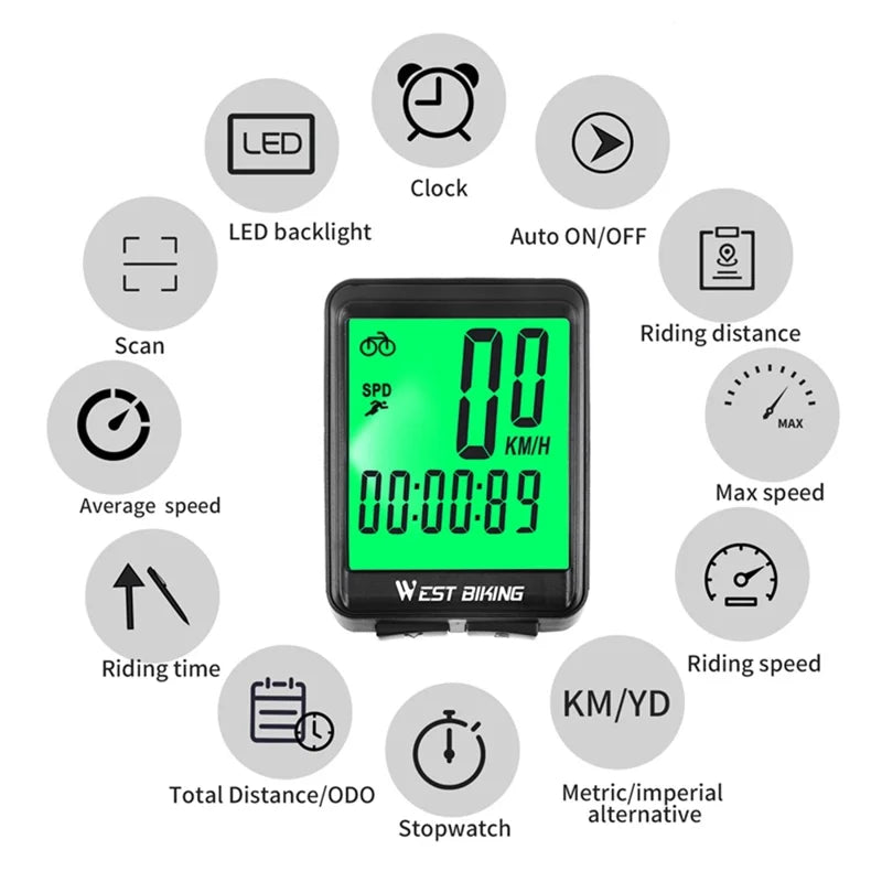 WEST BIKING Contachilometri per bici da corsa wireless con schermo retroilluminato e contachilometri impermeabile - Retroilluminazione bianca - Grande schermo... Per saperne di più