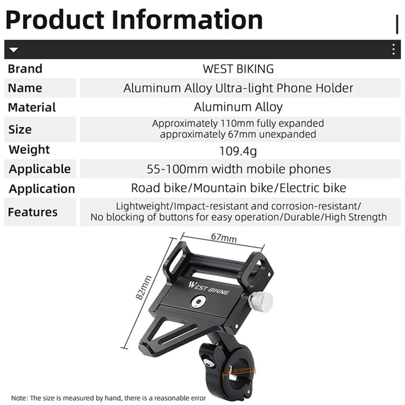- Design del supporto regolabile compatibile con il 99% dei telefoni cellulari: la larghezza completamente aperta del supporto per telefono è di circa 110 mm. Per garantire la stabilità, si consiglia di installare telefoni cellulari con larghezza da 55 a 100 mm.