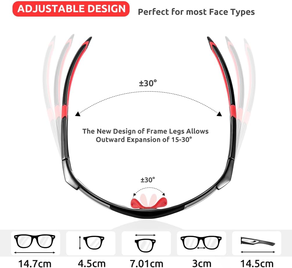 La fusione di leggerezza e robustezza: pesando appena 30 grammi, questi occhiali sono progettati con lenti in PC resistenti agli urti e una montatura durevole, offrendoti un accessorio affidabile e confortevole per tutte le tue attività.