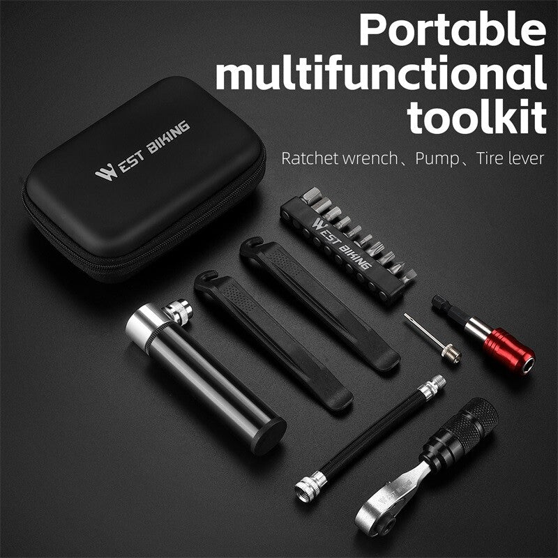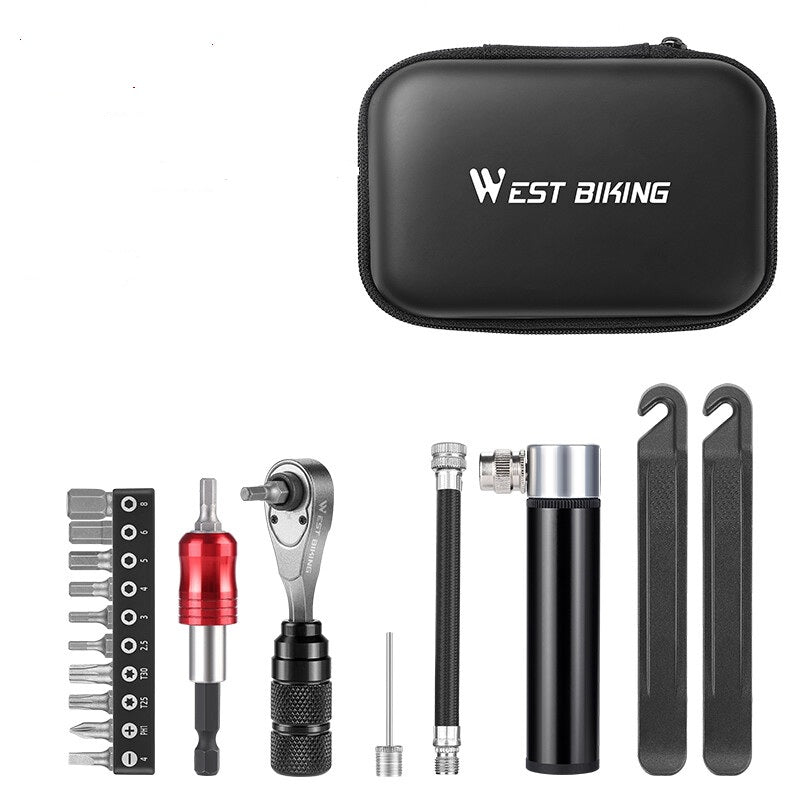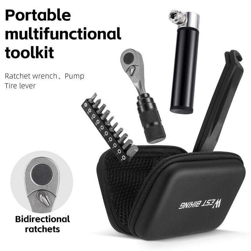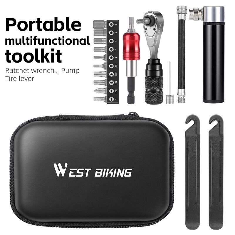 Nešiojamas įrankių rinkinys WEST BIKING yra kompaktiška ir būtina įranga visiems jūsų greitiems remontams ir reguliavimams kelyje. Sukurtas tvirtumui ir patogumui, šis rinkinys užtikrina, kad niekada neliksite be pagalbos, nesvarbu, ar važiuojate keliu, ar kalnų dviračiu.