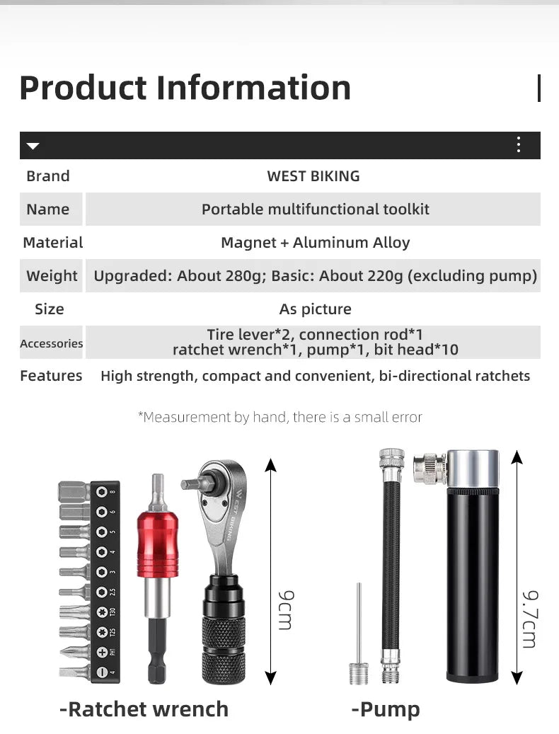 Nešiojamas įrankių rinkinys WEST BIKING – daugiafunkcinis žiedinis veržliaraktis