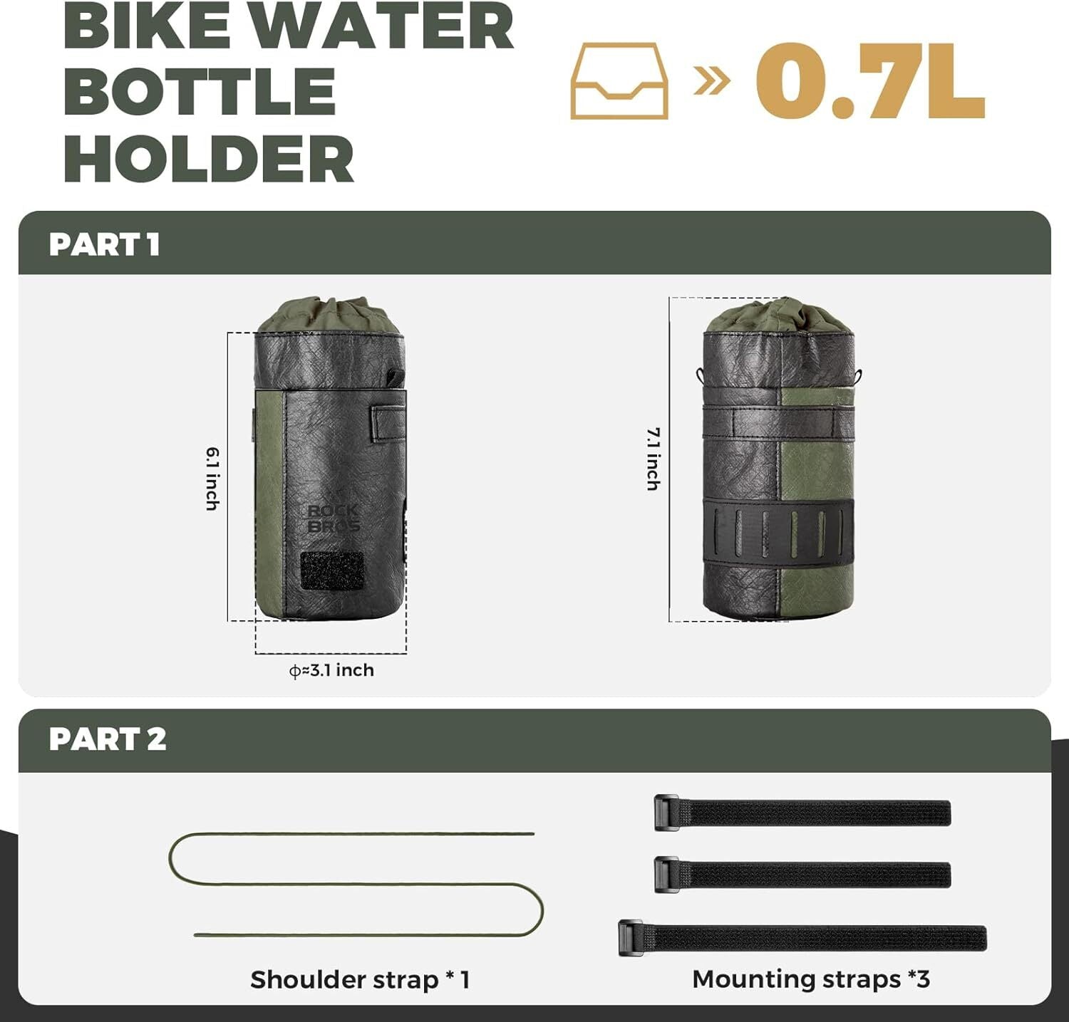 Šis ROCKBROS vairo buteliuko laikiklis/krepšys yra idealus priedas, leidžiantis turėti savo gėrimą ir būtiniausius daiktus po ranka, nesvarbu, ar važiuojate dviračiu, ar einate pėsčiomis. Itin lengvas ir universalus, jis derina saugumą ir individualumą.