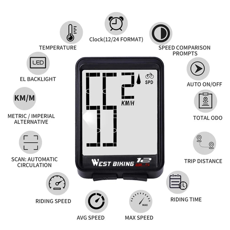 WEST BIKING Compteur de vélo de route VTT avec écran rétroéclairé, étanche, multifonction, sans fil, compteur de vitesse – Noir... En savoir plus