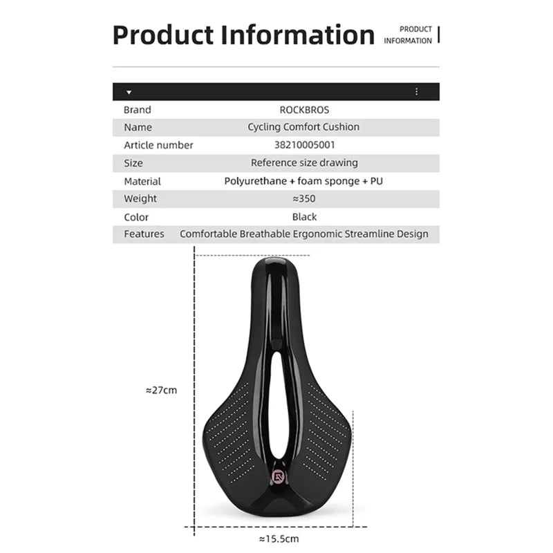 ROCKBROS 38210005001 Selle de Vélo VTT Antichoc Respirante en Cuir PU