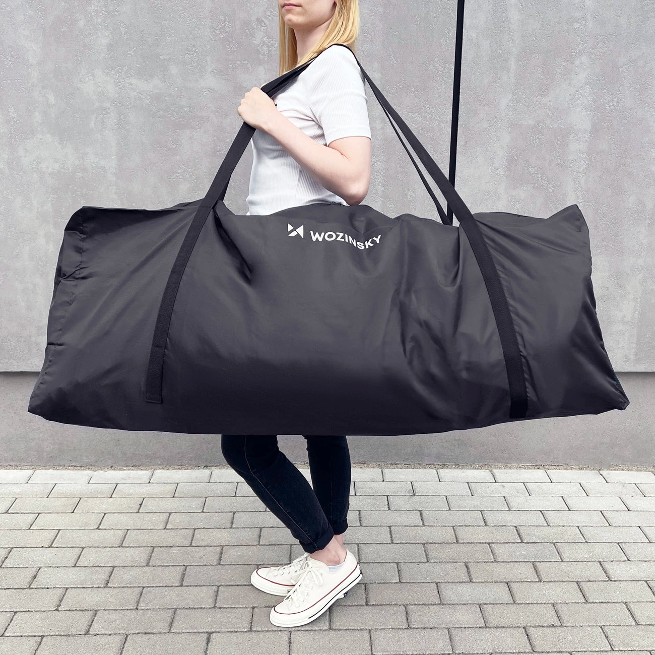 Le sac de scooter Wozinsky WSB5BK a une forme universelle et de grandes dimensions : 124 x 25 x 45 cm. Il convient à de nombreux modèles de scooters des fabricants les plus populaires, tels que Xiaomi, Segway, Motus et Razor. Il suffit littéralement d'une minute pour fermer hermétiquement le scooter dans le sac. Le sac se ferme avec une fermeture éclair pratique à deux curseurs - pour encore plus de commodité.