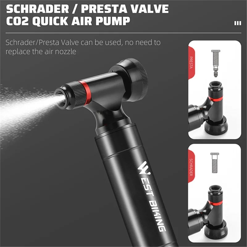 1147Gonfleur CO2 pour vélo, pompe à vélo en alliage d'aluminium avec manomètre