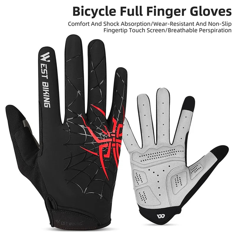 1270Gants toile d'araignée, tactiles, doigts complets - Noir+Rouge