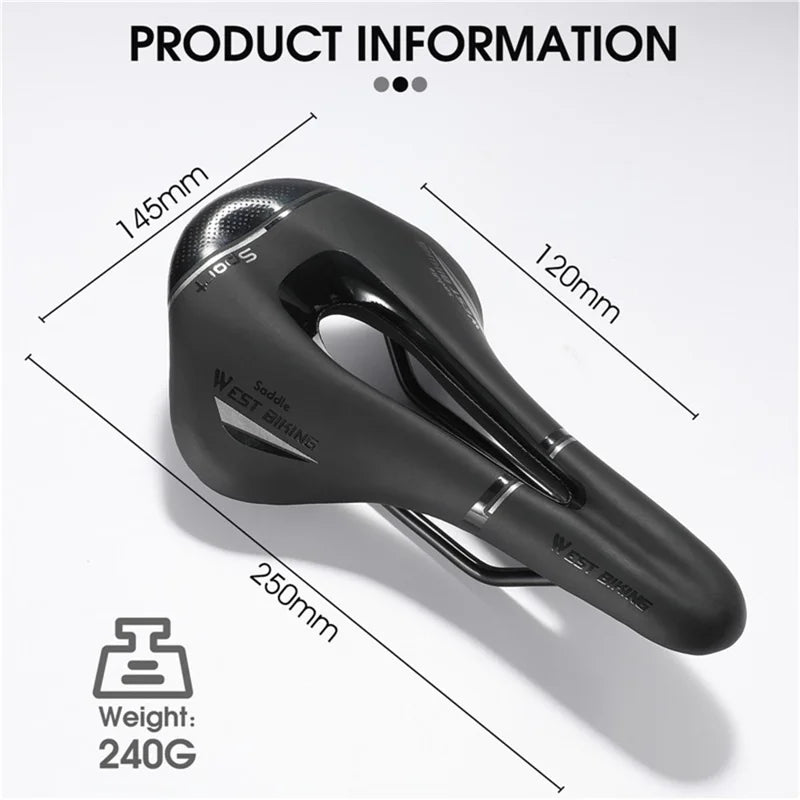 WEST BIKING YP0801117 Selle de vélo Coussin de siège Respirant en Cuir PU Creux Confortable Antichoc Selle de Vélo de Route VTT - Noir / Argent