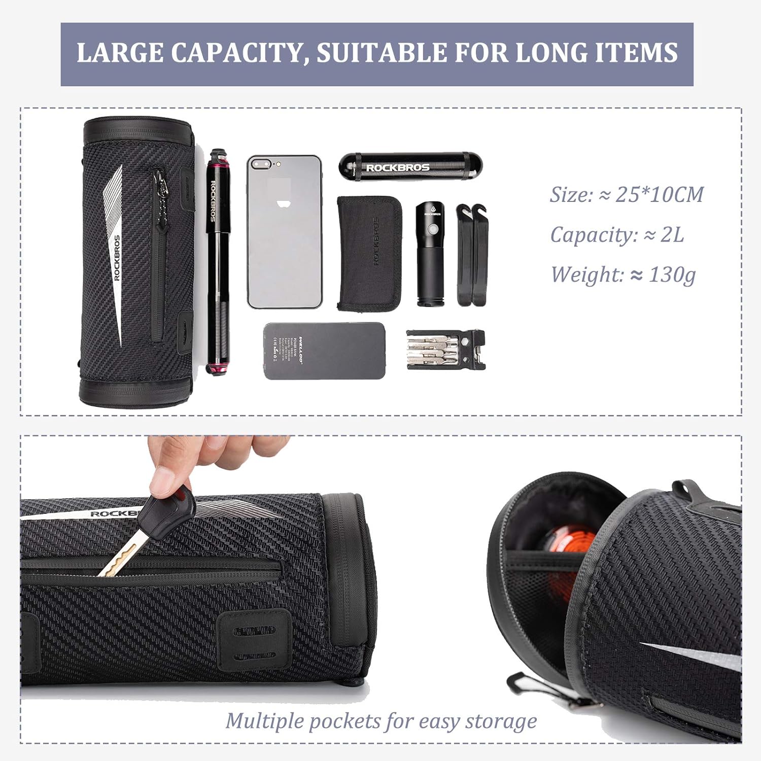 Découvrez la sacoche de vélo ROCKBROS, un accessoire multifonctionnel et léger conçu pour s'adapter à votre style de vie. Avec sa capacité de 2 litres et ses multiples options de fixation, elle est la solution de rangement idéale pour vos trajets quotidiens et vos aventures.