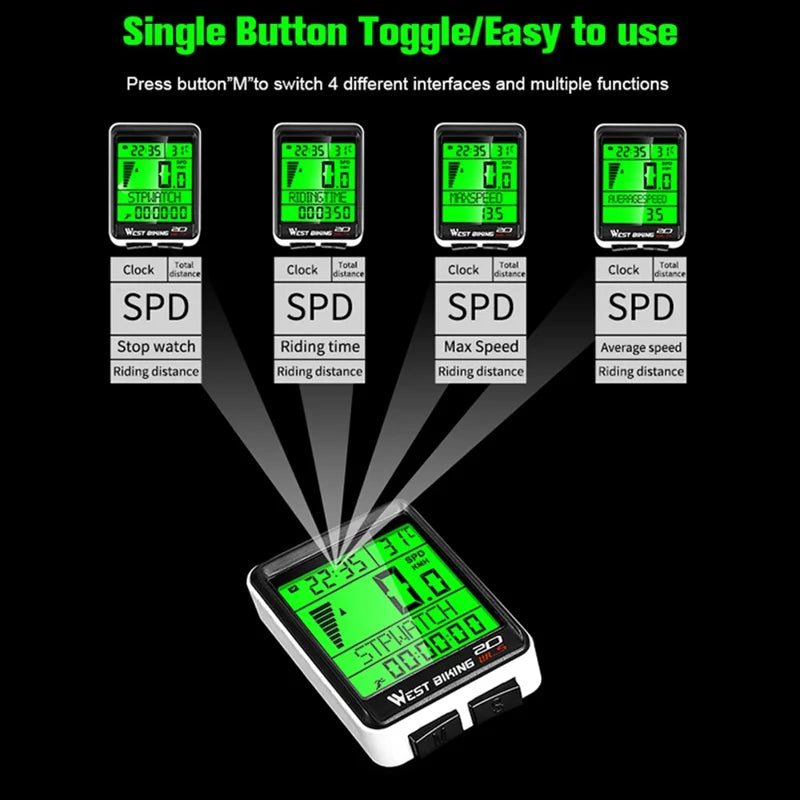 1537Compteur de vélo sans fil pour VTT et route, écran rétroéclairé étanche