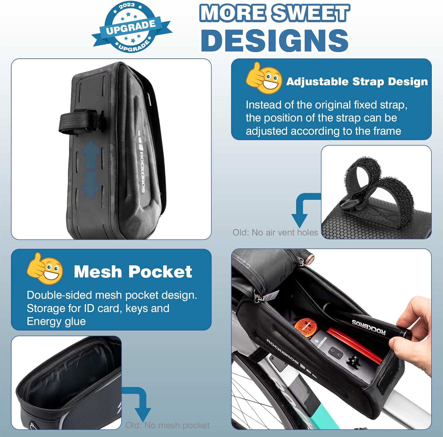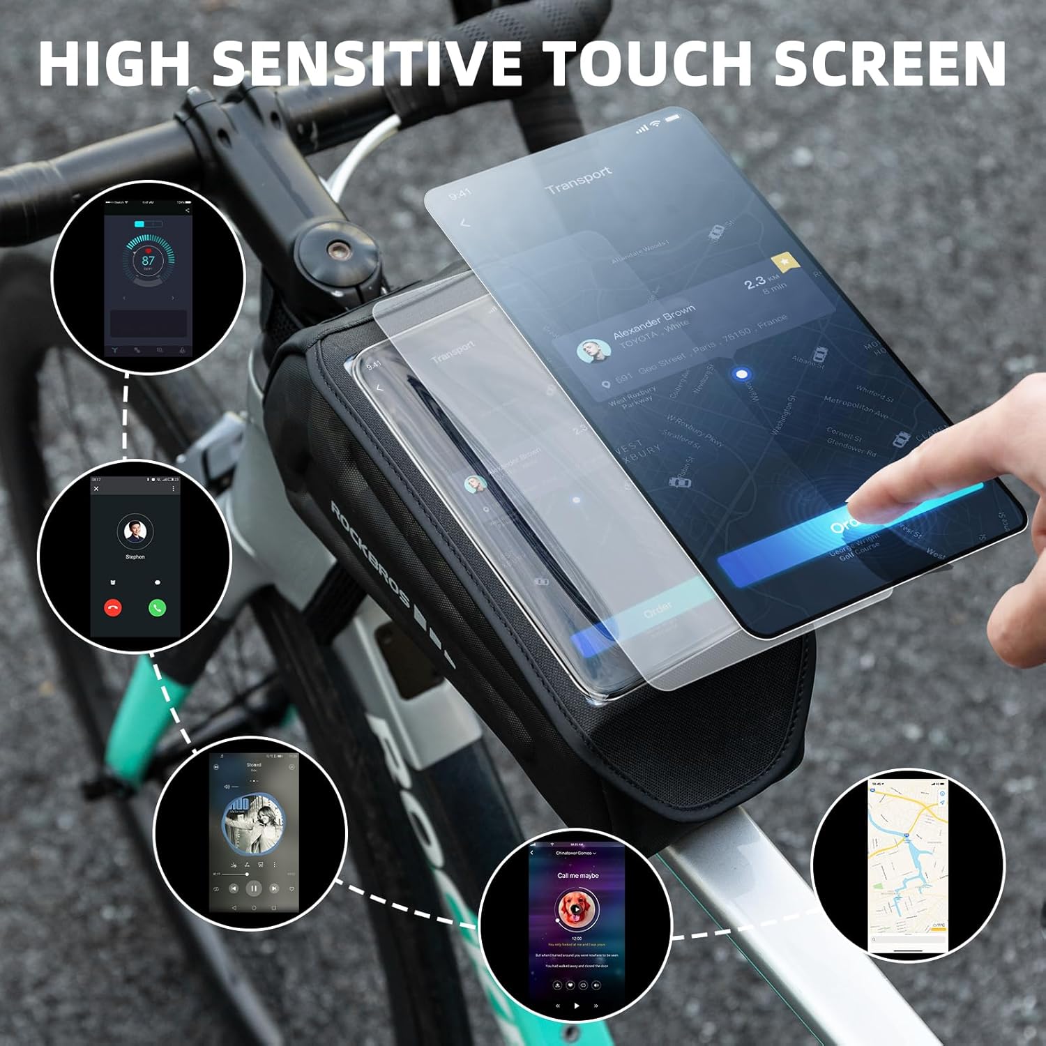 Découvrez la sacoche de guidon ROCKBROS, l'accessoire indispensable pour une expérience de cyclisme à la fois pratique, sécurisée et connectée. Avec son design robuste et sa grande capacité, elle vous permet de garder vos essentiels à portée de main, tout en protégeant votre téléphone.