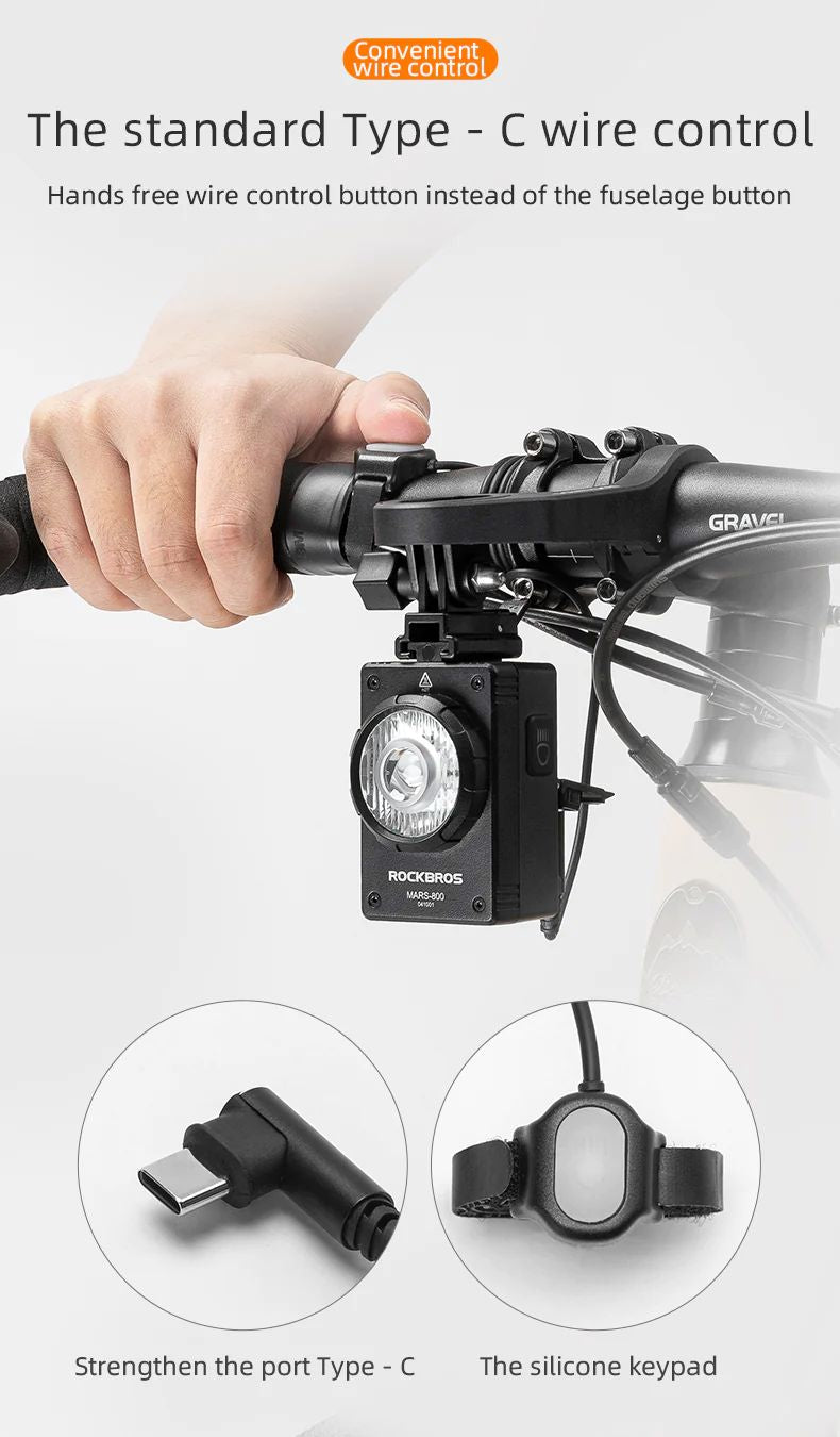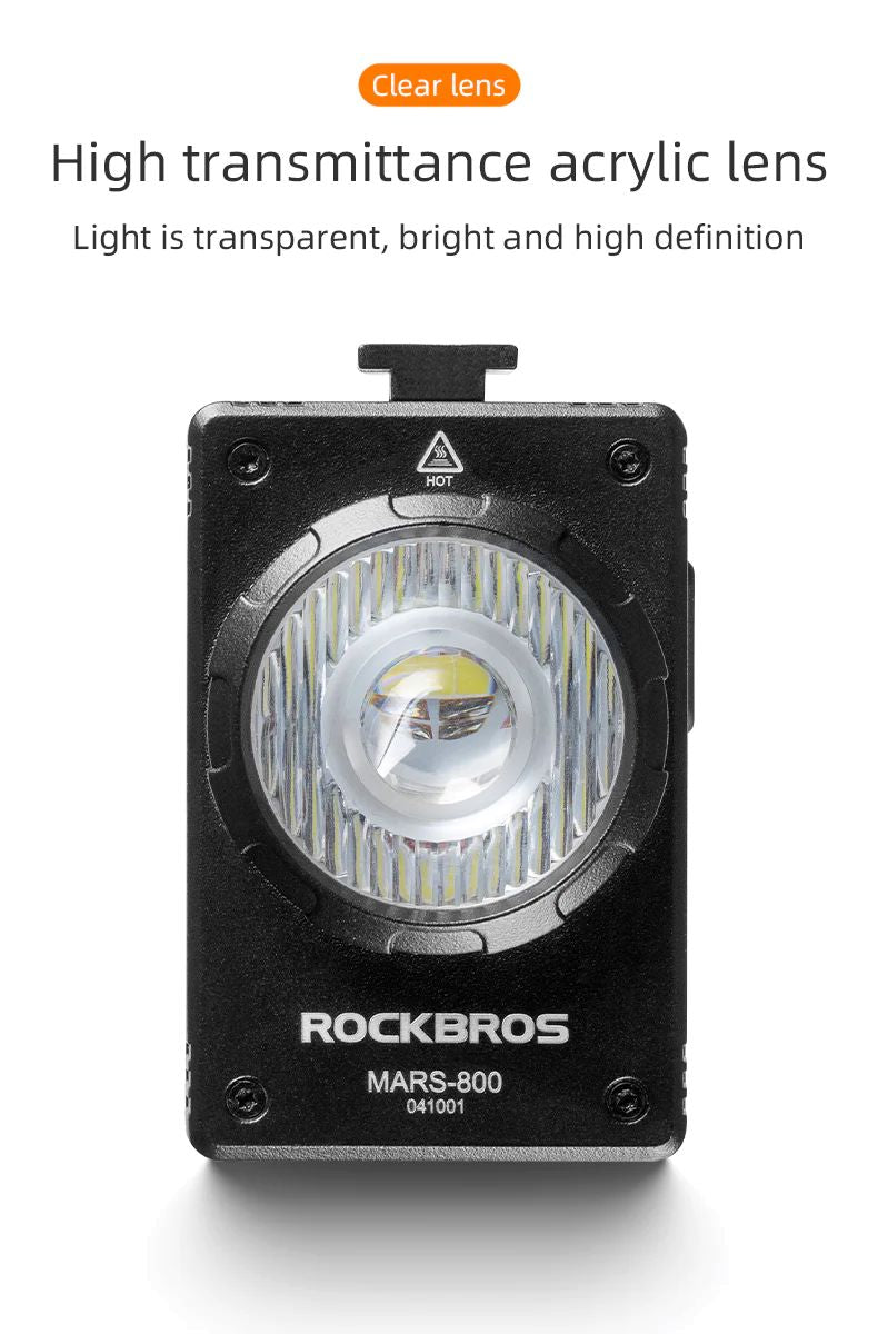 Phare Avant de Vélo ROCKBROS MARS-800 – 800 Lumens, Étanchéité IPX6 et Batterie Longue Durée