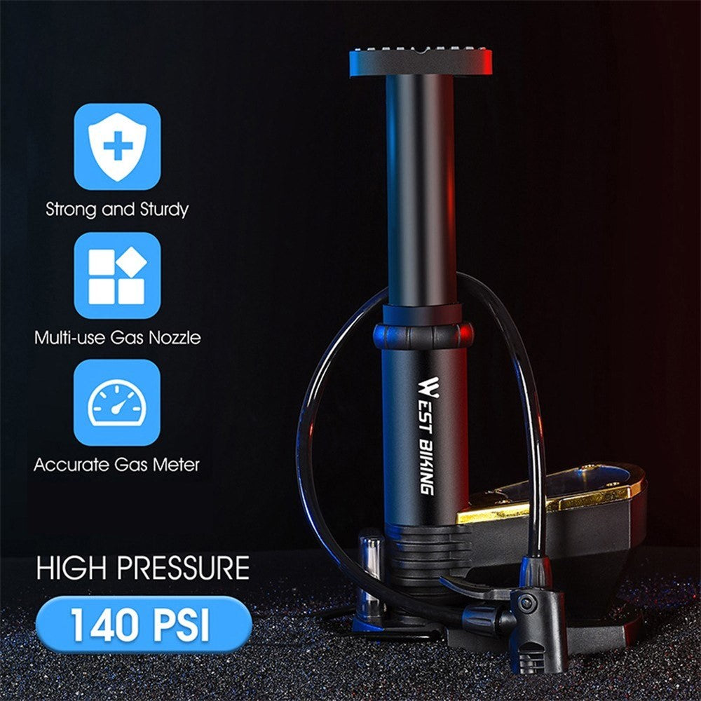 WEST BIKING Pompe à Pied Vélo Haute Pression 140 PSI – Gonfleur Rapide avec Manomètre – Route, VTT & Ballons