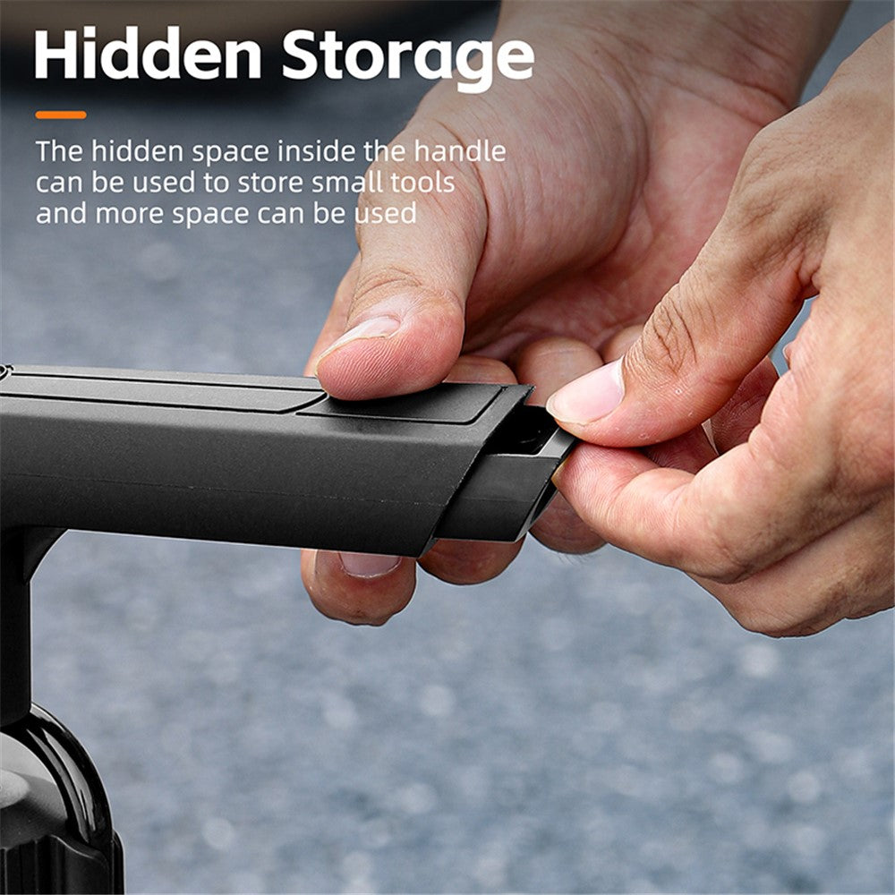 Son design ingénieux inclut un espace de rangement dissimulé dans la poignée, idéal pour glisser de petits outils ou accessoires de dépannage. Son manche ergonomique épais offre une excellente prise en main et réduit la fatigue lors de l’utilisation.