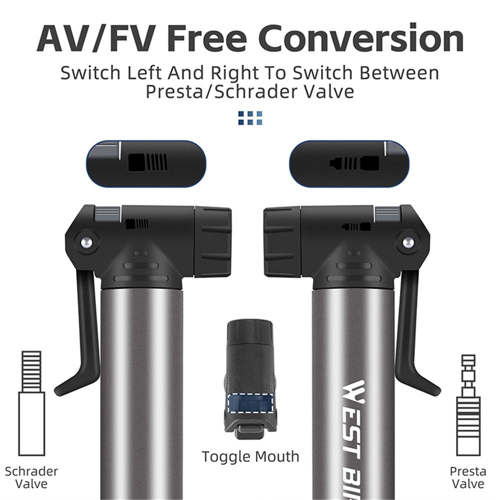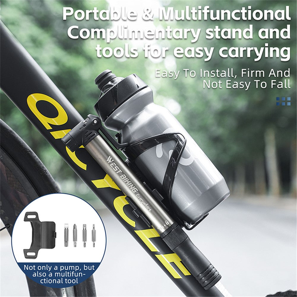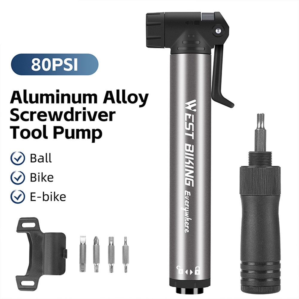WEST BIKING YP0711155 Mini Pompe à Main Multifonction 80 PSI avec Embouts de Tournevis Intégrés – Aluminium Résistant