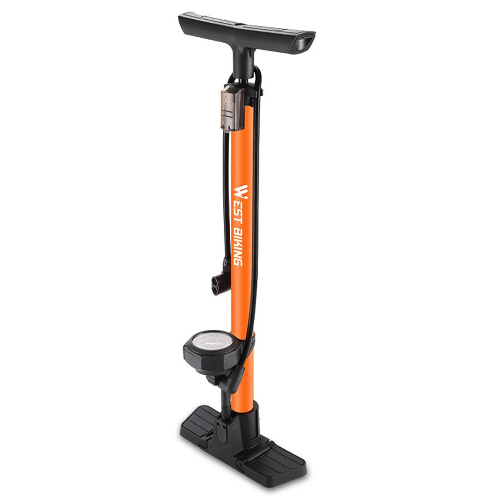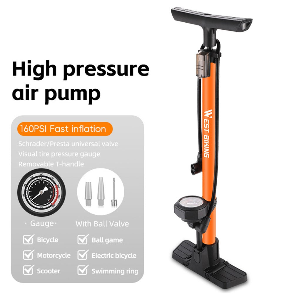 WEST BIKING YP0711181 Pompe à Vélo Manuelle avec Manomètre 160 PSI – Compatible VTT, Route, E-Bike et Véhicules – Orange