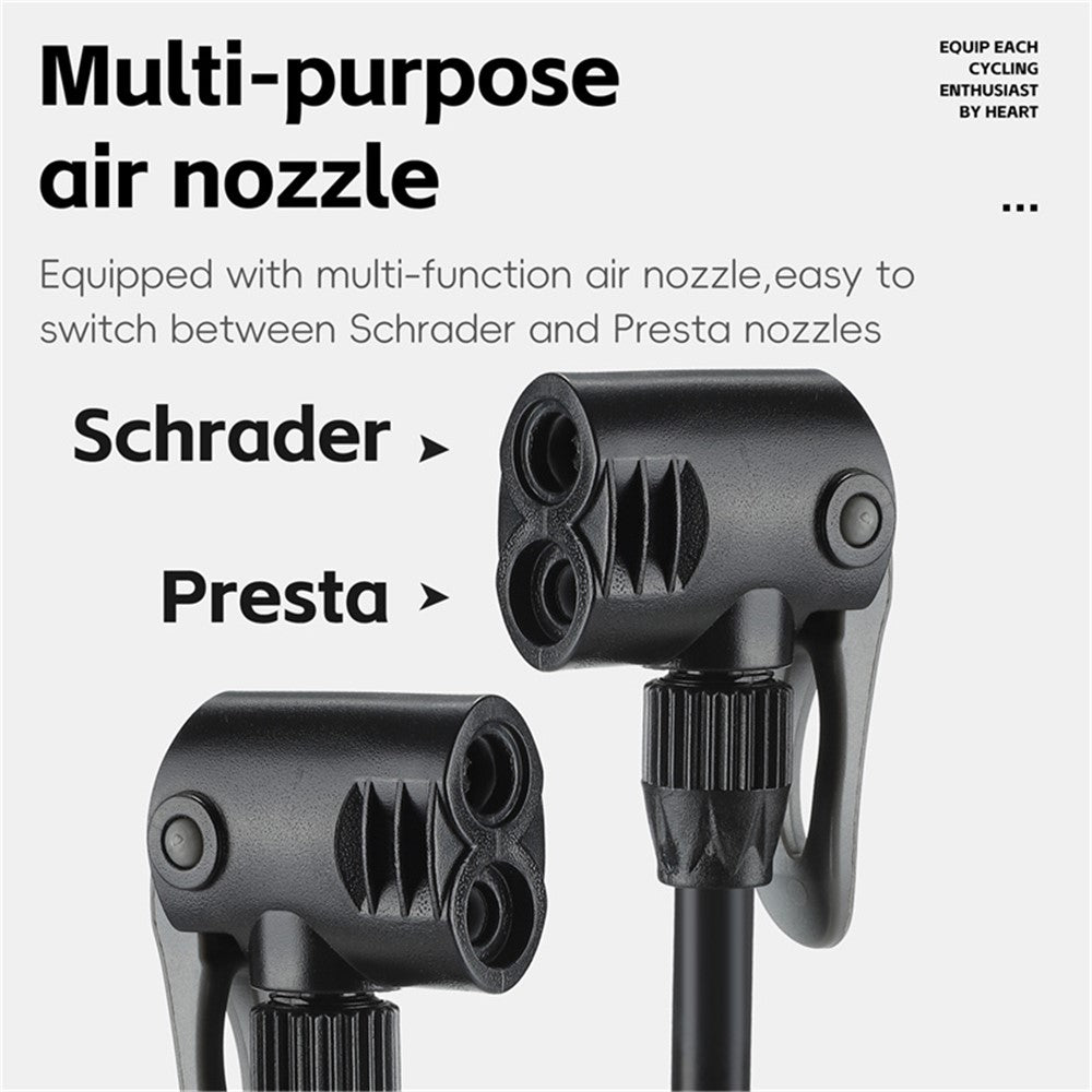 Gonflez vos pneus en toute simplicité avec la pompe manuelle WEST BIKING YP0711181, conçue pour offrir puissance, précision et confort. Capable d’atteindre 160 PSI, elle est équipée d’un manomètre intégré qui affiche la pression en temps réel afin d’éviter toute surpression et garantir un gonflage optimal.