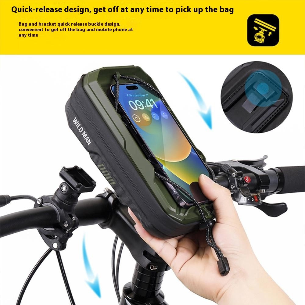 WILD MAN GX330 Sacoche Rigide de Guidon Vélo 0,6L – Support Téléphone Rotatif 360° et Fixation Rapide – Grise