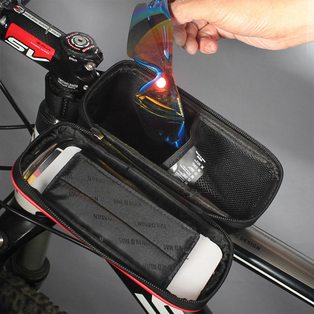 WILD MAN E2 Sacoche Vélo Étanche 1L – Sacoche de Cadre Avant avec Écran Tactile Transparent – Noire