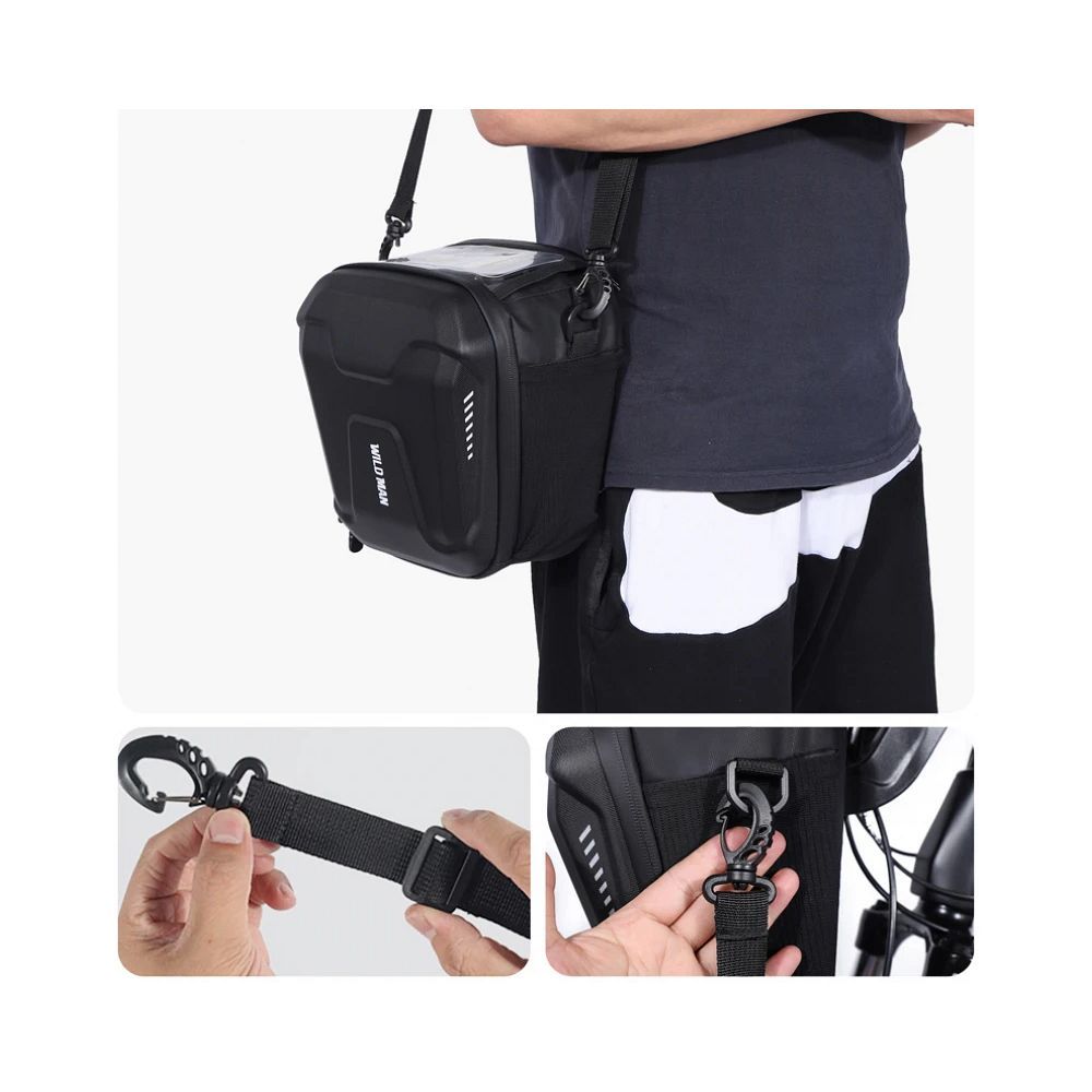 La fenêtre transparente vous permet d'utiliser votre smartphone ou votre navigation, et grâce à la sangle, elle peut rapidement devenir un sac à bandoulière. La grande capacité et le boîtier rigide rendent le sac idéal pour ranger et protéger vos objets pendant vos trajets à vélo, protégeant ainsi les gadgets transportés en cas de choc ou de chute du vélo.