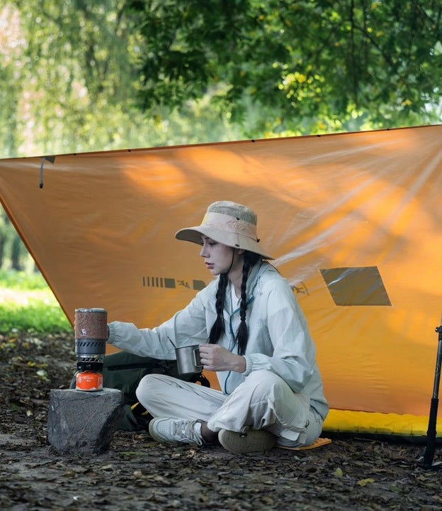 Le poncho est équipé d'œillets renforcés et de boutons-pression ajustables. Ces éléments assurent un ajustement sécurisé et une résistance au vent améliorée, garantissant un confort et une stabilité accrus dans des conditions météorologiques difficiles.