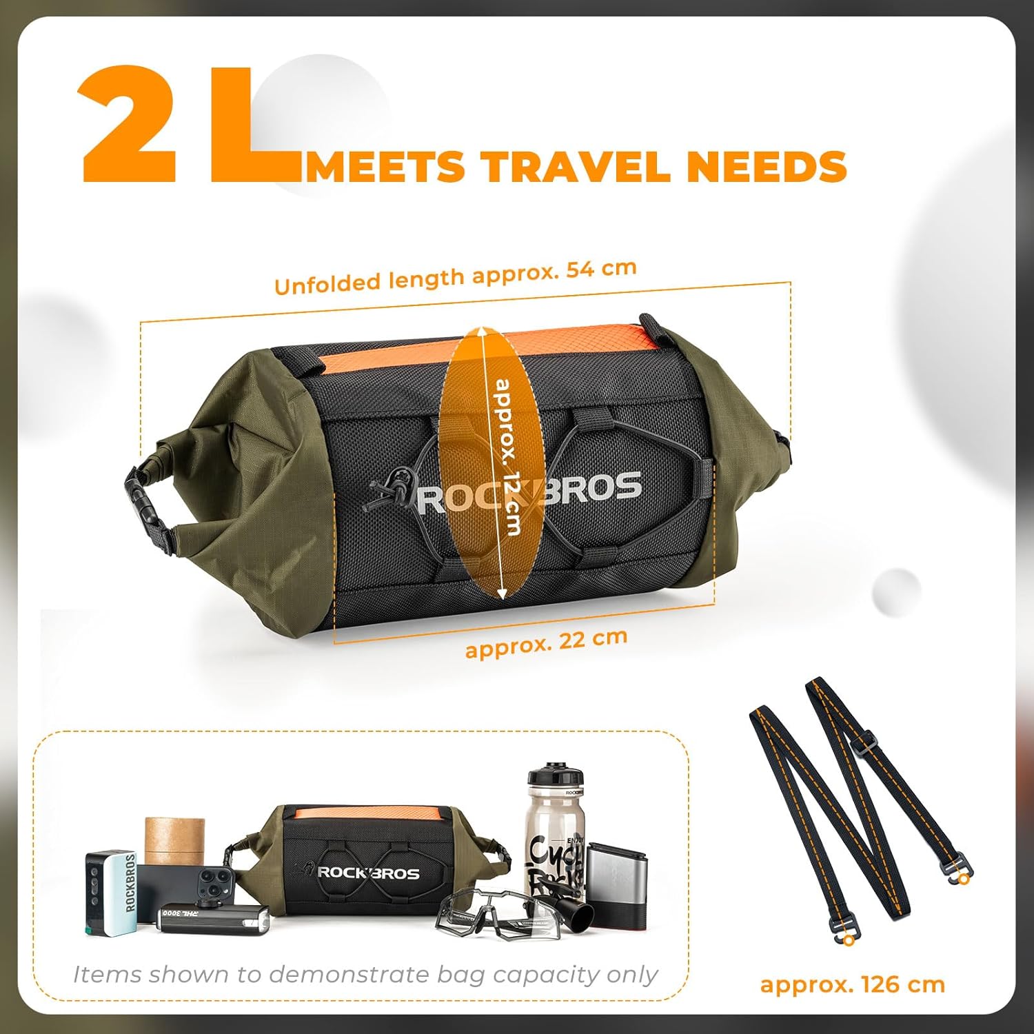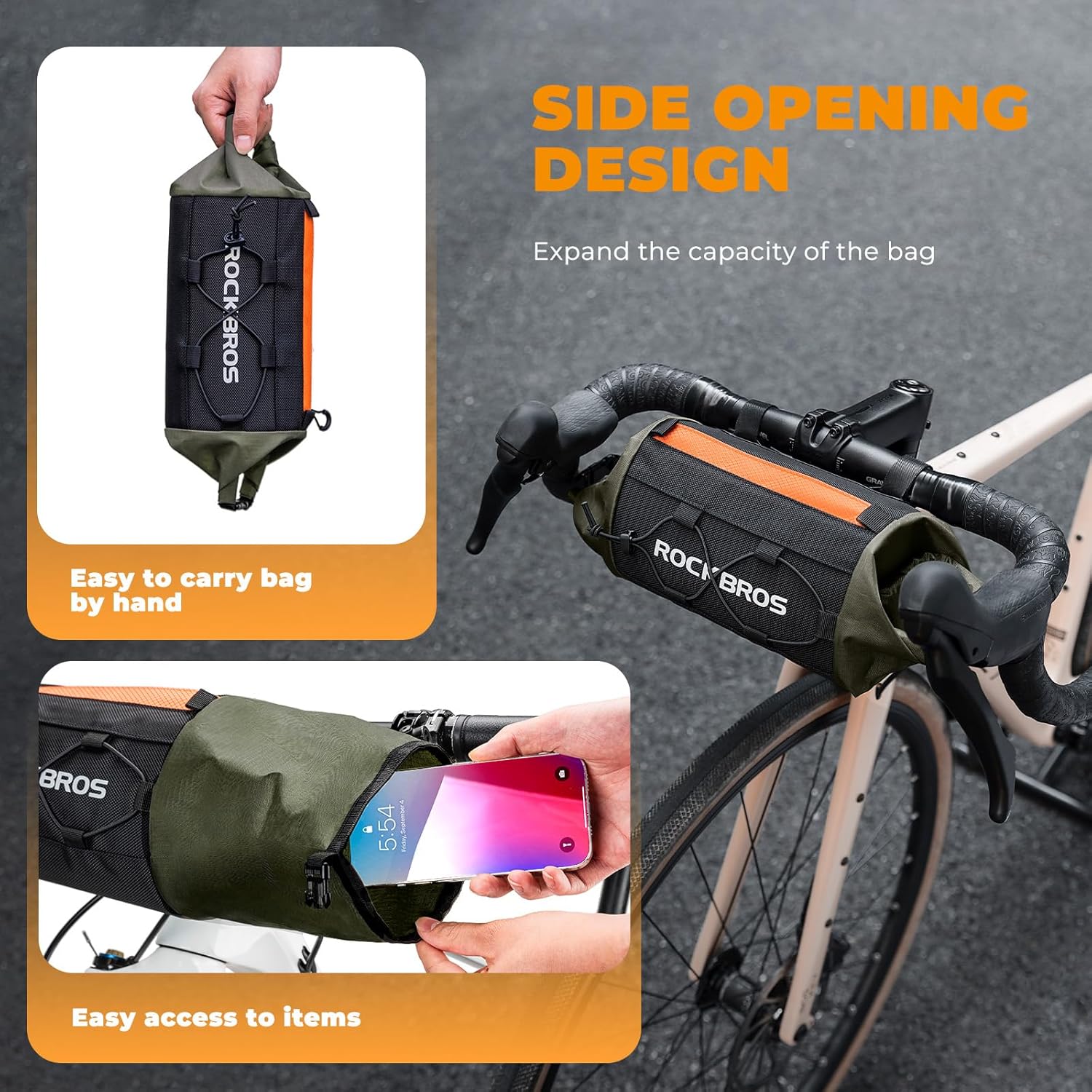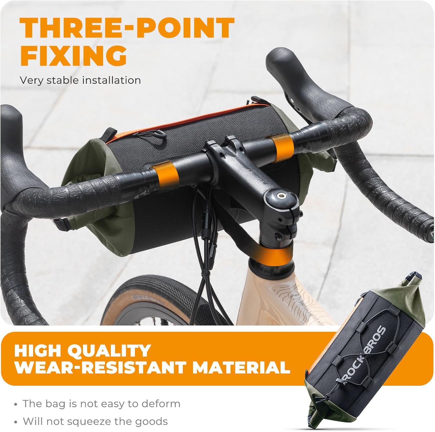 Stabilité : Le sac se fixe solidement au guidon en trois points, assurant qu'il ne bouge pas, même sur terrains accidentés (MTB, Gravel).