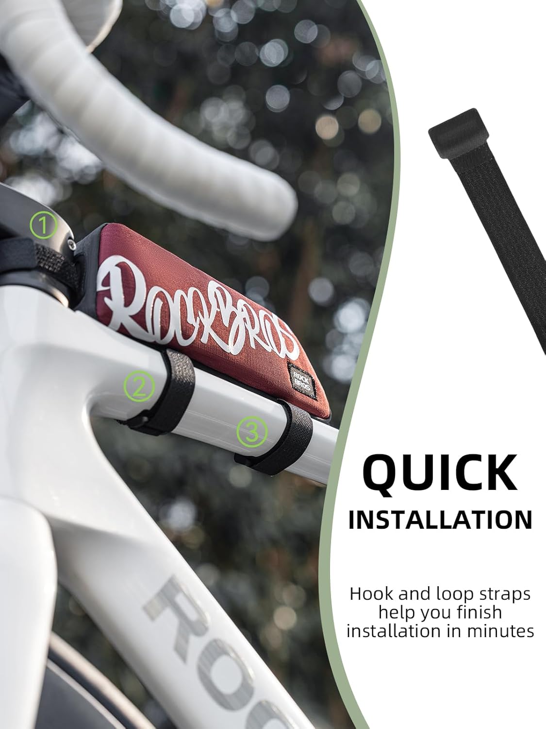 Grâce à trois sangles auto-agrippantes solides, vous pouvez attacher et détacher facilement cette sacoche du tube supérieur de votre vélo sans aucun outil supplémentaire. Ce système simple et convivial vous permet de vous concentrer sur la route sans perdre de temps lors de la préparation ou du retrait.