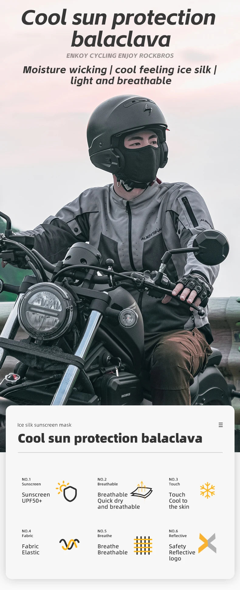 Restez au frais et protégé du soleil pendant toutes vos activités grâce à la cagoule d'été ROCKBROS en tissu glacé. Conçue pour offrir un confort exceptionnel et une protection efficace, elle est l'accessoire indispensable pour les cyclistes, motards et tous les amateurs de plein air.