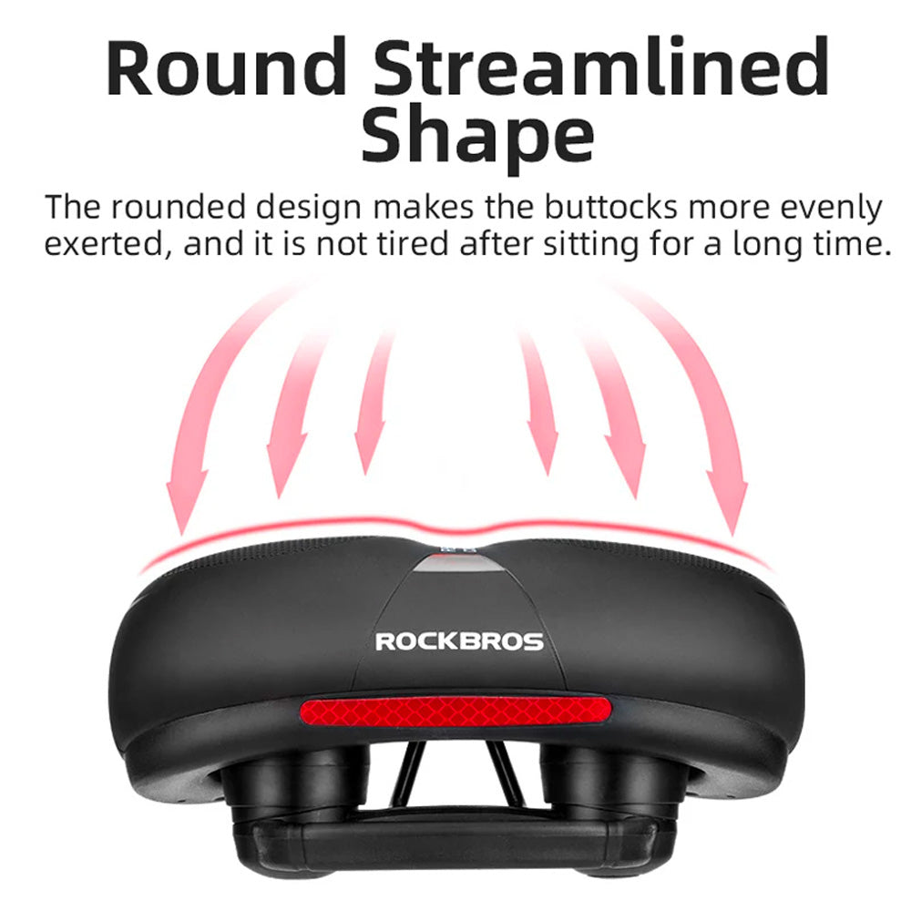 La selle de vélo Rockbros AQ-6090R est conçue pour un confort d'utilisation optimal. Grâce à son revêtement extérieur résistant et à sa mousse dense à l'intérieur, elle offre un excellent confort durant les longs trajets. Un grand réflecteur à l'arrière augmente la visibilité du cycliste sur la route, améliorant ainsi la sécurité, surtout par faible luminosité.