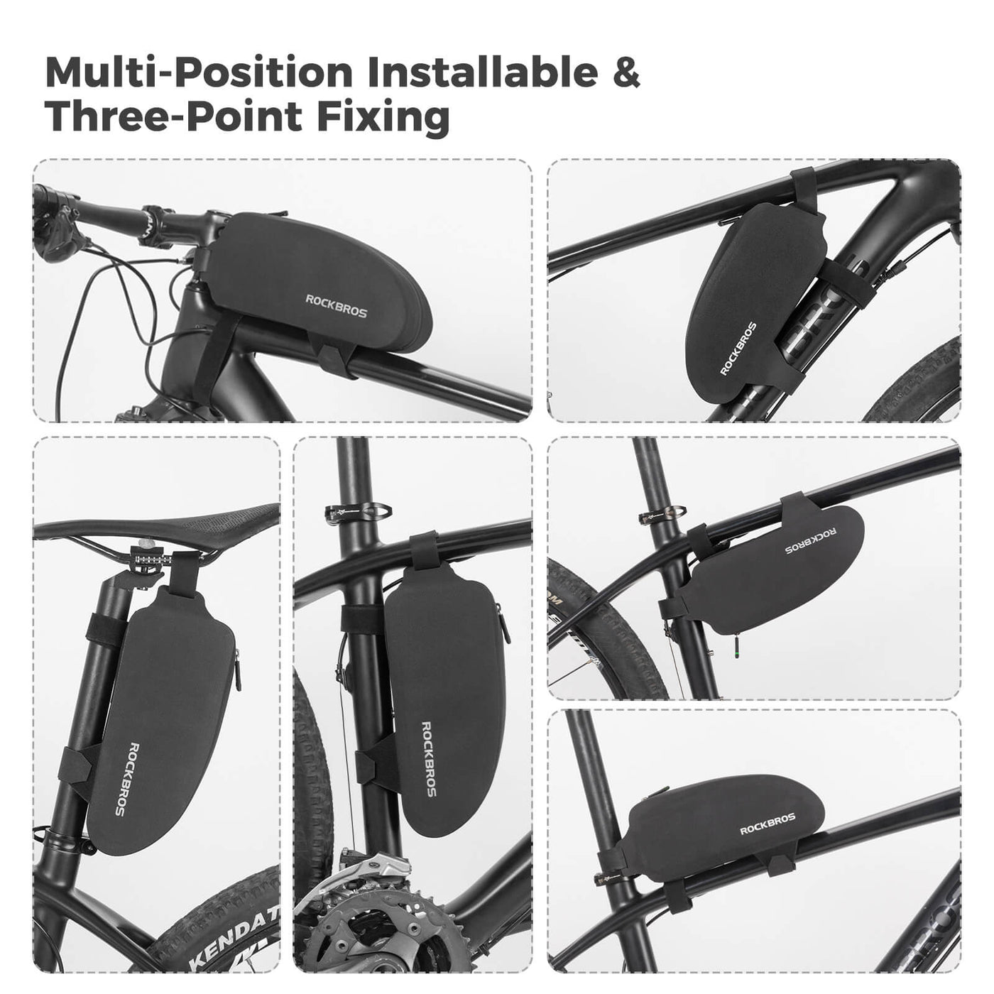 Profitez d'une protection totale pour vos affaires avec la sacoche de cadre ROCKBROS 100 % étanche. Conçue pour résister aux intempéries les plus extrêmes, elle vous permet de rouler en toute confiance, sachant que vos essentiels restent au sec.