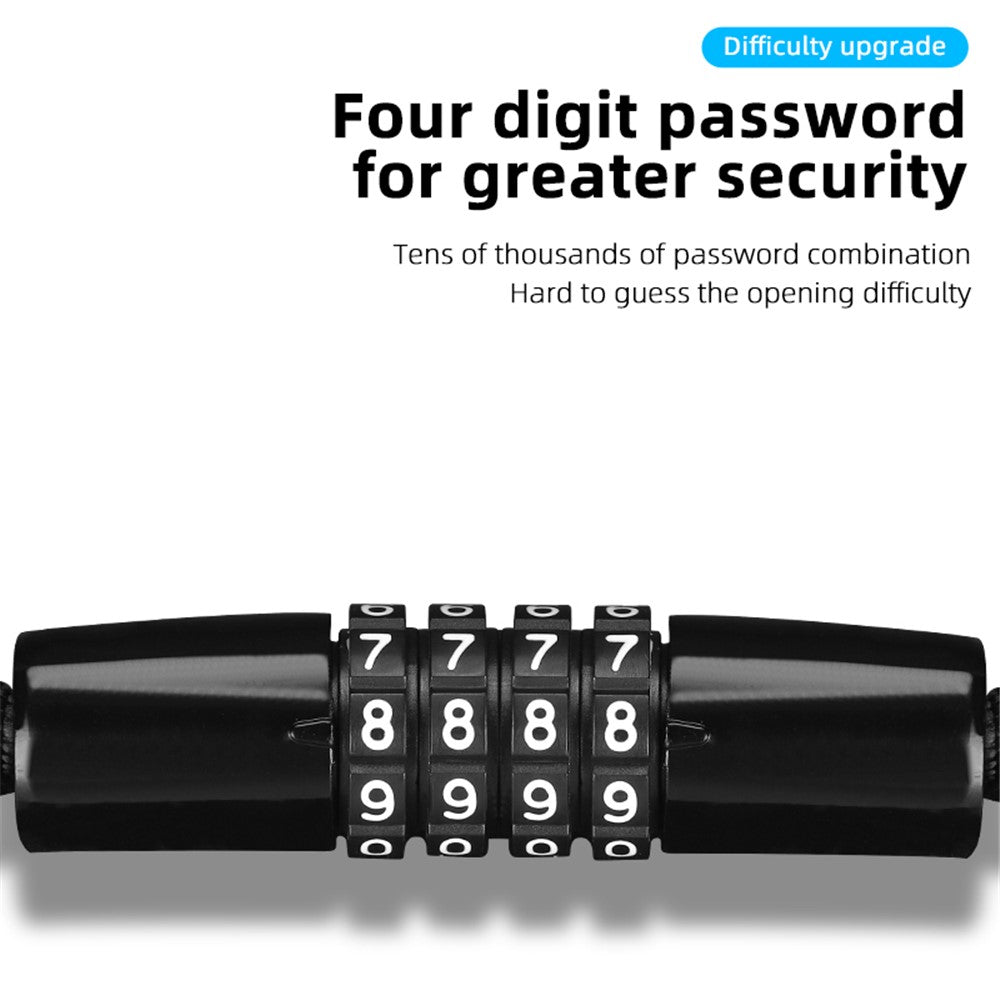 Code à 4 Chiffres Complexe : La serrure anti-vol utilise un code à 4 chiffres réinitialisable, offrant 10 000 combinaisons possibles. Cela rend la tentative de craquage extrêmement difficile.