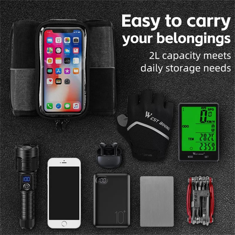- Com um bolso em TPU para ecrã tátil de telemóvel na parte superior, pode navegar durante o ciclismo