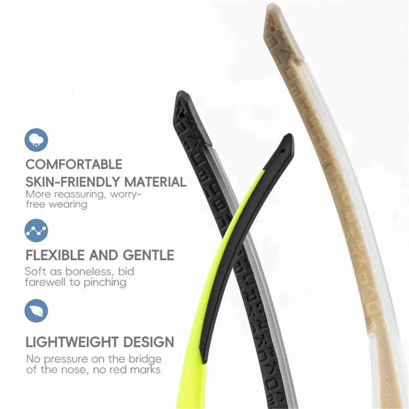 - Hastes confortáveis e resistentes: aliviam a pressão sobre o dorso do nariz e as orelhas, projetadas ergonomicamente para uma experiência de conforto sem precedentes
