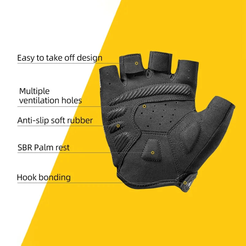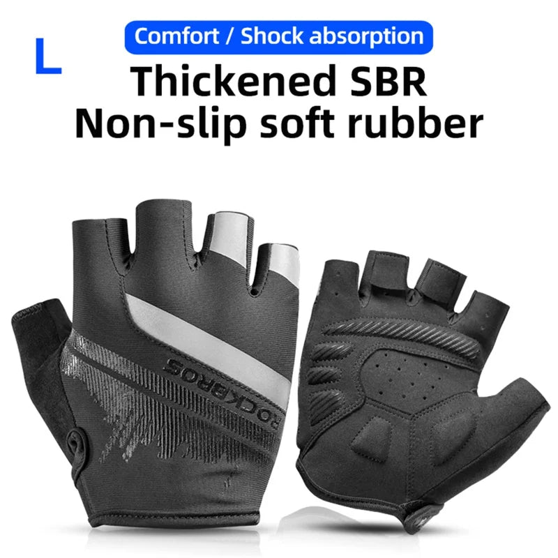 Luvas de Ciclismo Meio-Dedos ROCKBROS S247 - Luvas Resistentes ao Desgaste com Faixas Refletoras para Ciclismo e Bicicleta