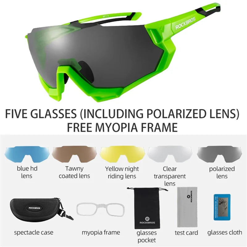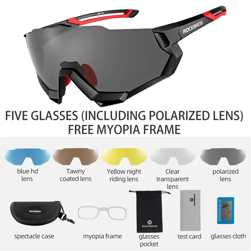 ROCKBROS 10133 Óculos de sol fotocromáticos polarizados para ciclismo, anti-vento, anti-areia, com correção de miopia